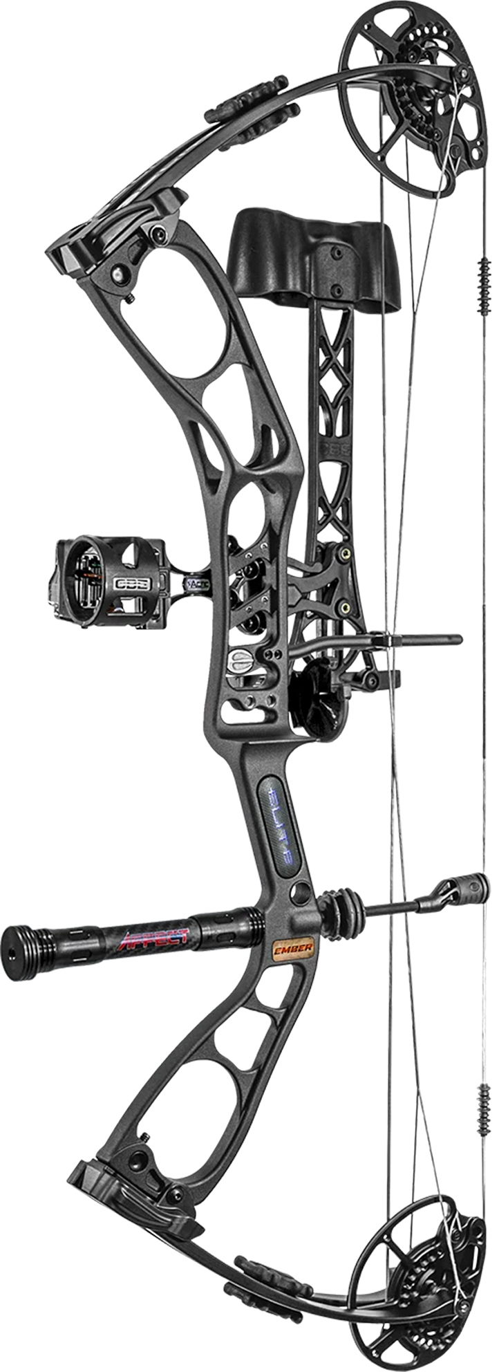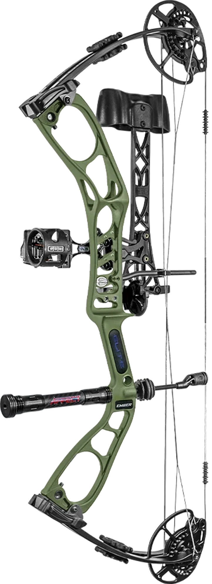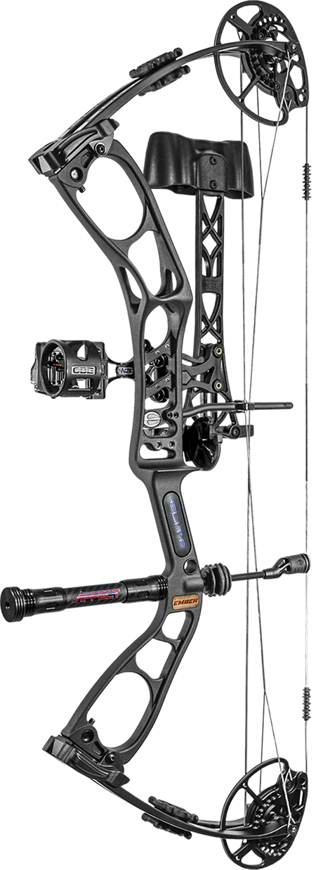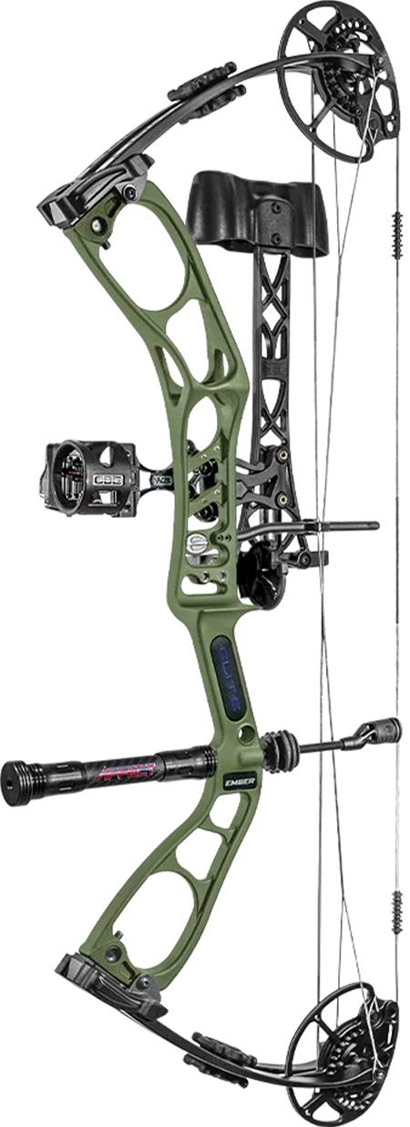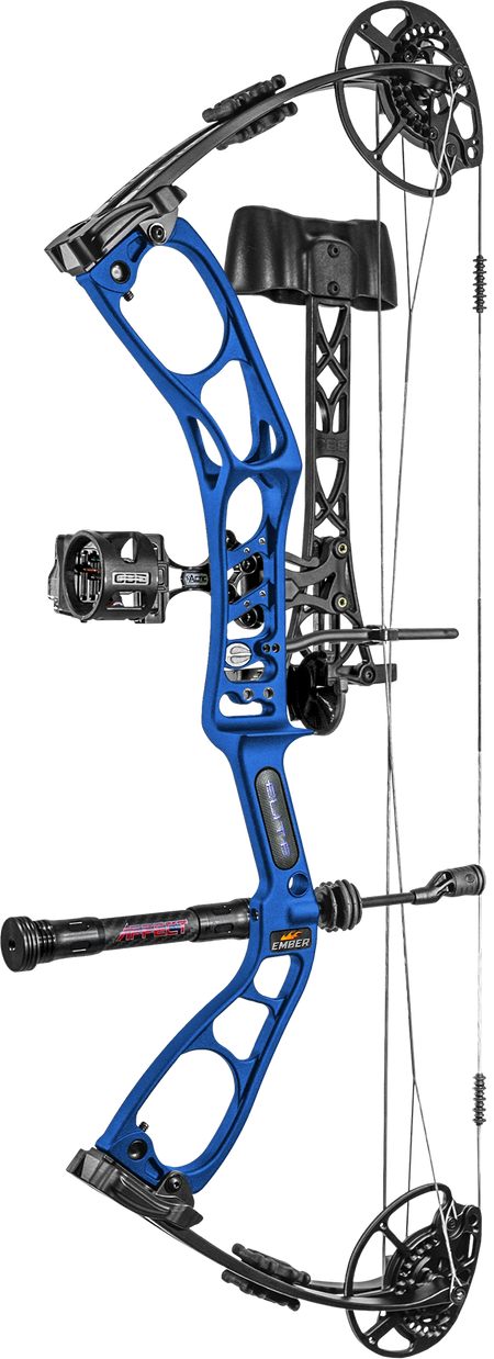 Everyone knows that an Elite bow is the world's most shootable bow. The Ember brings that shootability to archers of all sizes and ages. An aluminum caged riser, limb pockets, cams, and mods. Cam bearings instead of bushings. High-quality Winner's Choice strings. Limb dampeners included. Elite's integrated limb stops deliver a solid back wall that other bows simply can't.