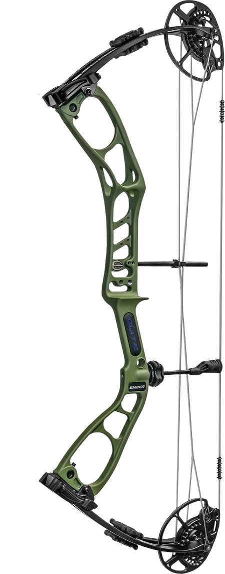Everyone knows that an Elite bow is the world's most shootable bow. The Ember brings that shootability to archers of all sizes and ages. An aluminum caged riser, limb pockets, cams, and mods. Cam bearings instead of bushings. High-quality Winner's Choice strings. Limb dampeners included. Elite's integrated limb stops deliver a solid back wall that other bows simply can't.