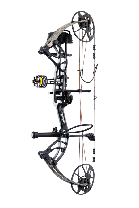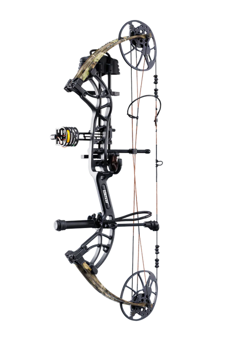 Includes V-Biscuit rest, premium 4 pin sight, 5 Spot arrow quiver, stabilizer, Radical peep sight, and wrist sling