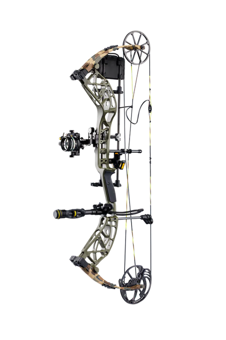 Trophy Ridge SWFT DUO sight, VRSA Light Quiver, Hitman stabilizer with quick disconnect, IMS® V-Biscuit rest, Radical peep sight, and wrist sling for the ultimate shooting experience -