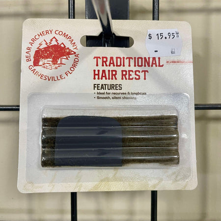 Bear Traditional Rest - a quiet platform for your arrow to ride as you draw it back and a smooth, silent wall against which your arrow slides. Self adhesive. For use on either right or left hand bows.
