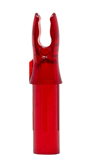 Bohning's Blazer® Nock fits standard carbon shafts with an ID of .246" (6.25mm, but commonly known as 6.5mm) and Super UNI Bushing systems. The Blazer® Nock features a double-lock throat and a raised index. Its throat size is .120" (3.05mm) and each Blazer® Nock weighs an average of 9.0 grains (583.2 mg). Tech tip: for easier insertion and indexing, apply a small amount of Bohning's Tex-Tite or Seal-Tite Wax to the nock shank. NOT ALL BRANDS OF NOCKS ARE CREATED EQUAL At Bohning, every nock style must pass the following steps before introduction to the market: