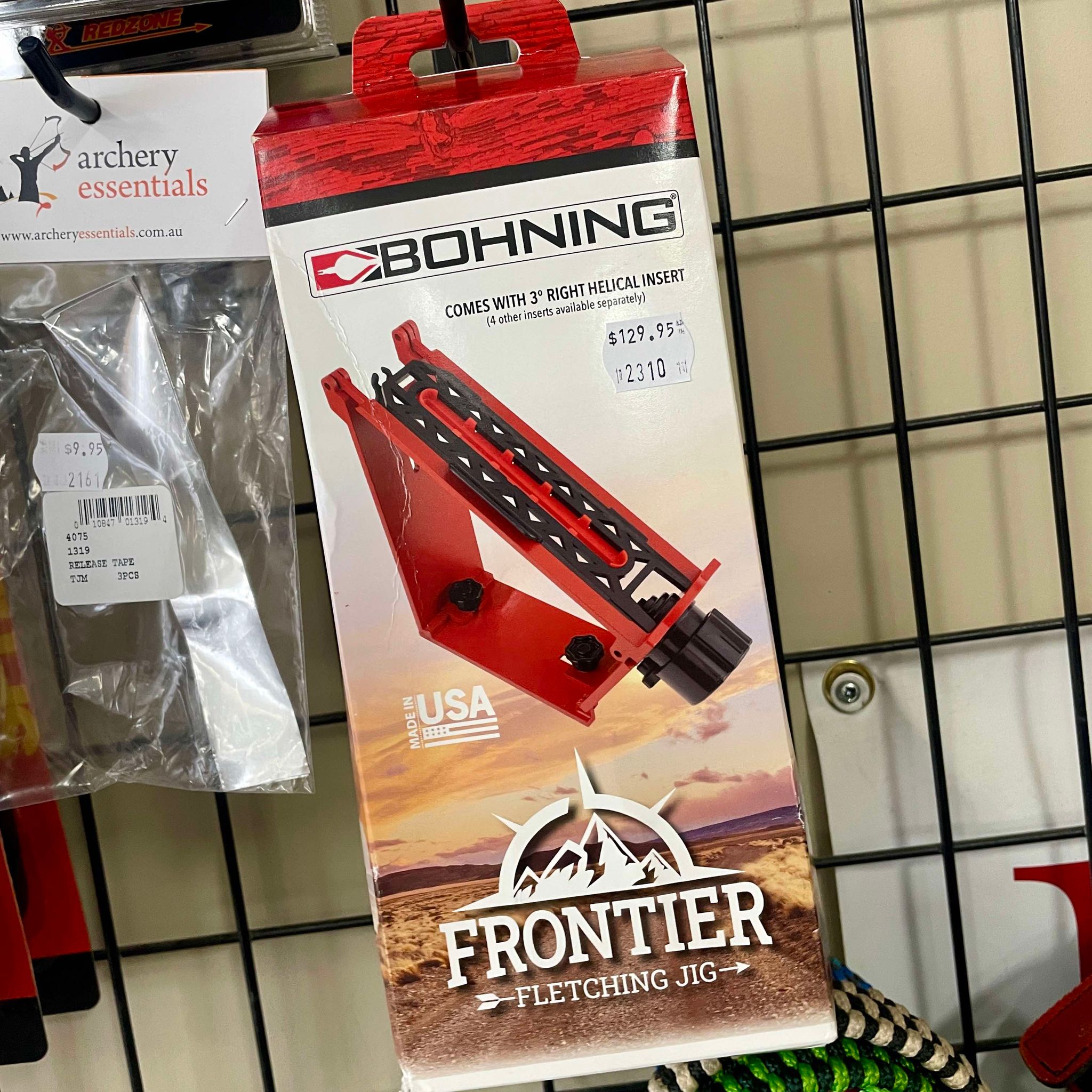 Bohning Frontier 3deg Right Helical Fletching Jig - incorporates Bohning's clamp style inserts. Fletch any diameter arrow or crossbow bolt. Easy to use. Easy to clean with Acetone. Fletches 3 degree right helical. Other inserts available. Folds flat. Portable/packable. Great for your bench, hunting camp, club, or in your pack. Fletch with nock on, perfect indexing.