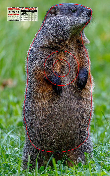 The Group 1 Ground Hog 250x400mm North American target is a premium field archery target face made for outdoor and all-weather conditions. Constructed from durable vinyl banner material with ABA Standard score zones, it can be purchased with or without eyelets for a flexible mounting solution. Perfect for serious archers and beginners alike.
