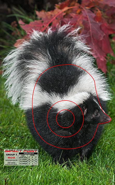 Group 1 Skunk from our North American target set is the perfect choice for experienced and new archers alike. It's crafted with robust vinyl banner material and features ABA Standard score zones, so you can use it in all weather conditions. Plus, it comes with or without eyelets for flexible mounting options. Get it and experience the premium field archery target face made just for you.