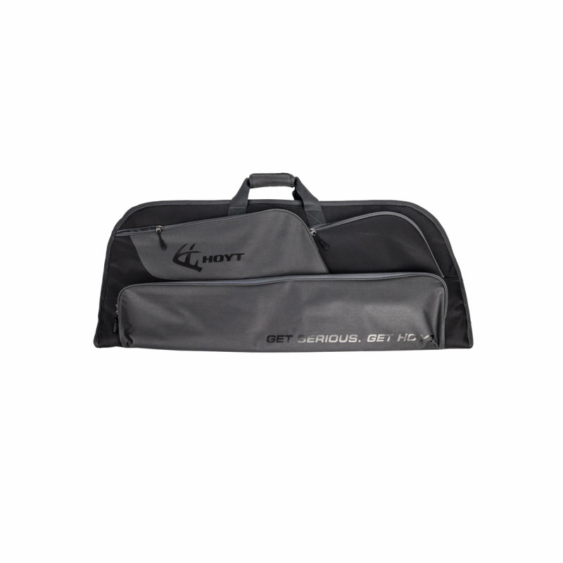 The Venture Bow Case is a soft case designed for bowhunting trips. It features a soft felt-lined interior to protect your bow, two top front pockets for accessories, an internal slot pocket with Velcro closure, and a long bottom pocket suitable for arrows or a quiver. Dimensions are 45" in length and 18" in height.