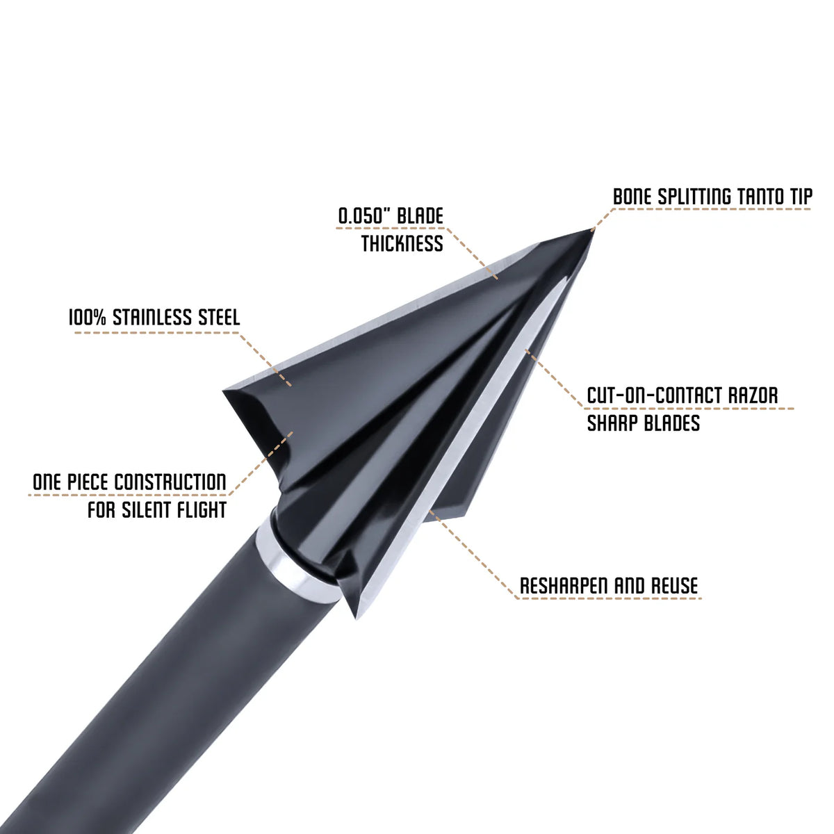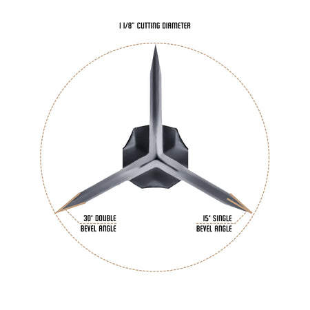 Proven Penetration - 15% More Penetration than competitor 3-blade designs, thanks to its bone-splitting tanto tip that delivers deep impacts and ensures pass-through shots.