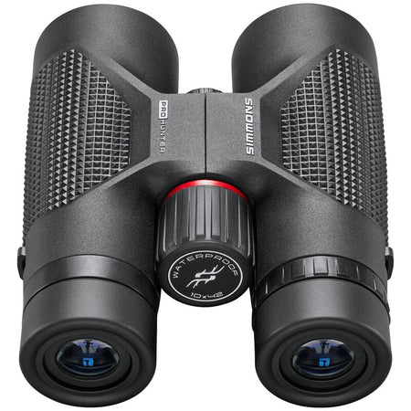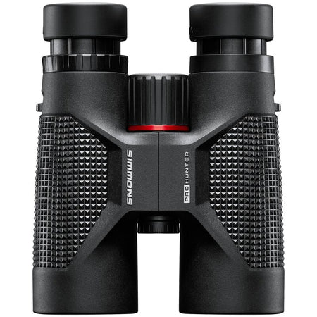 The all-new Simmons Pro Hunter Binoculars are built with an all-glass optical system providing crisp images in low lighting conditions with fully coated lenses and IPX7 waterproof and fog-proof construction giving you peace of mind in the outdoors. An aggressive rugged design with textured grip zones keep these binoculars securely in your hands. The Pro Hunter binoculars also feature a tripod adapter lug and include a convenient soft-sided carry case, neoprene neck strap, rubber lens covers and lens cleaning cloth.