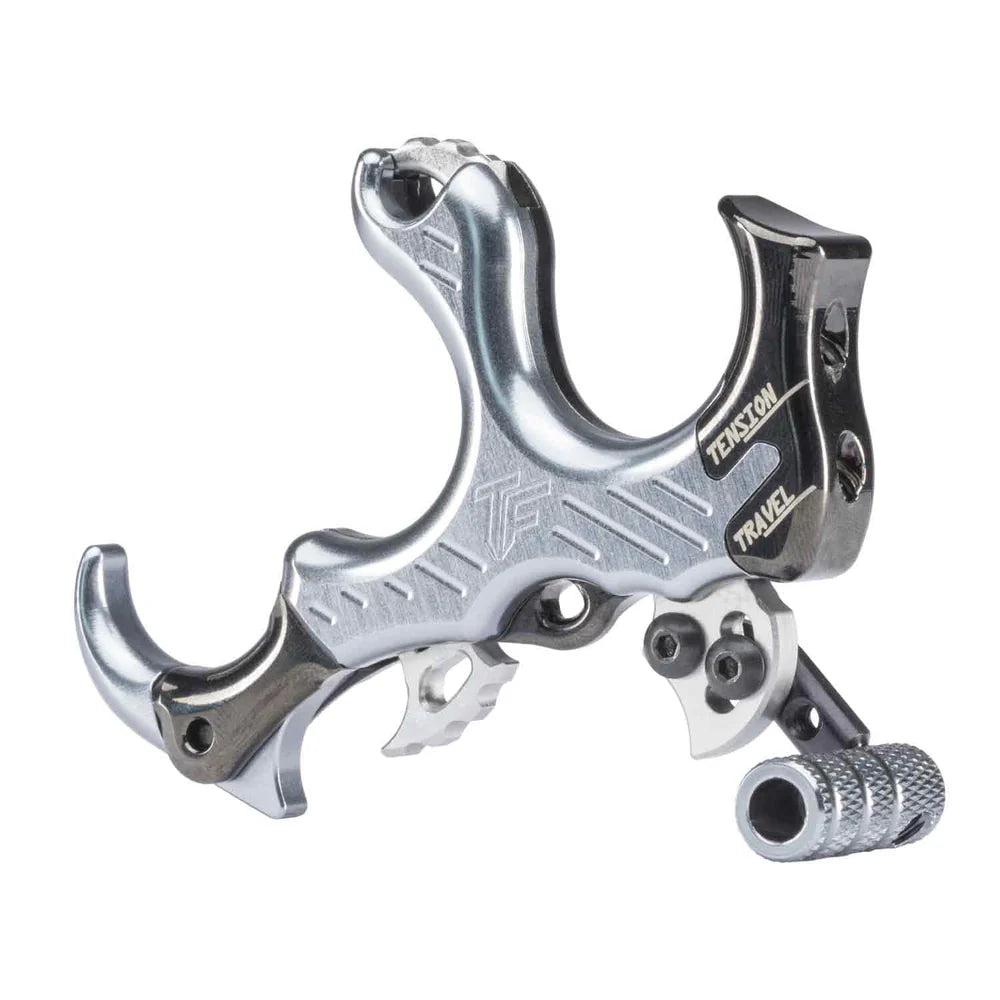 The Tru-Fire Synapse thumb release with true double-sear operation features a broad range of adjustments. The Synapse allows users the choice of two finger extensions—a hook that wraps the ring finger for a 3-finger configuration as well as a fourth-finger extension. The internal stainless steel components are precision milled for exceptionally crisp operation and flawless cocking of the trigger activation lever. The thumb button is multi-position configurable, with lockable adjustments for trigger travel and trigger tension. The trigger pressure is adjustable from a range of 1.25 to 20 ounces.