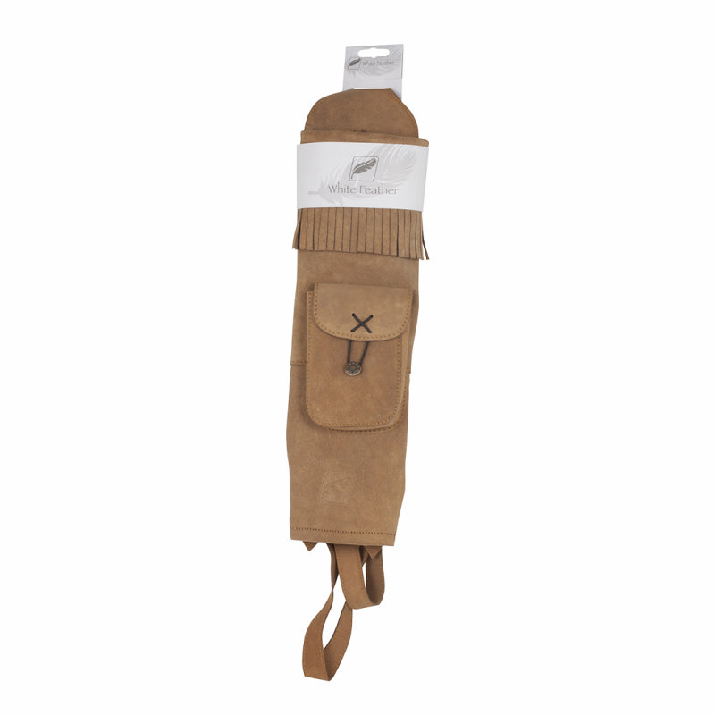 White Feather Traditional Water Brown suede leather 18in back quiver with accessory pocket. Fits left and right handed archers.
